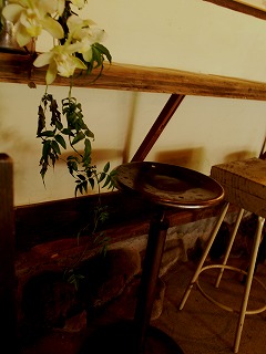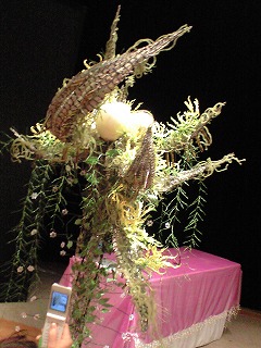 鉄のフレームをベースに資材、ドライ物、などを使い