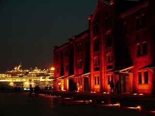 日が暮れた港にライトアップされた赤レンガ倉庫もきれいだった。